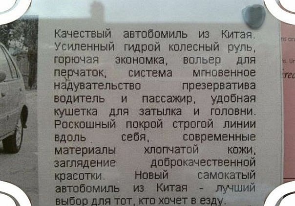 Пессимистка: женщина, которая думает, что ей не удастся поставить машину в единственно свободном промежутке. Оптимист: мужчина, который думает, что она не попробует это сделать./Гроувер Уэйлен Были: Toyota Starlet, 97г. Dauhatsu Pyzar, 96г. Nissan Terrano, 93г. Mitsubishi Delica, 96г. Когда меня спрашивают, как я справляюсь с жизненными трудностями, я отвечаю, что спасает чувство юмора....Я не лгу, но про коньяк умалчиваю. |