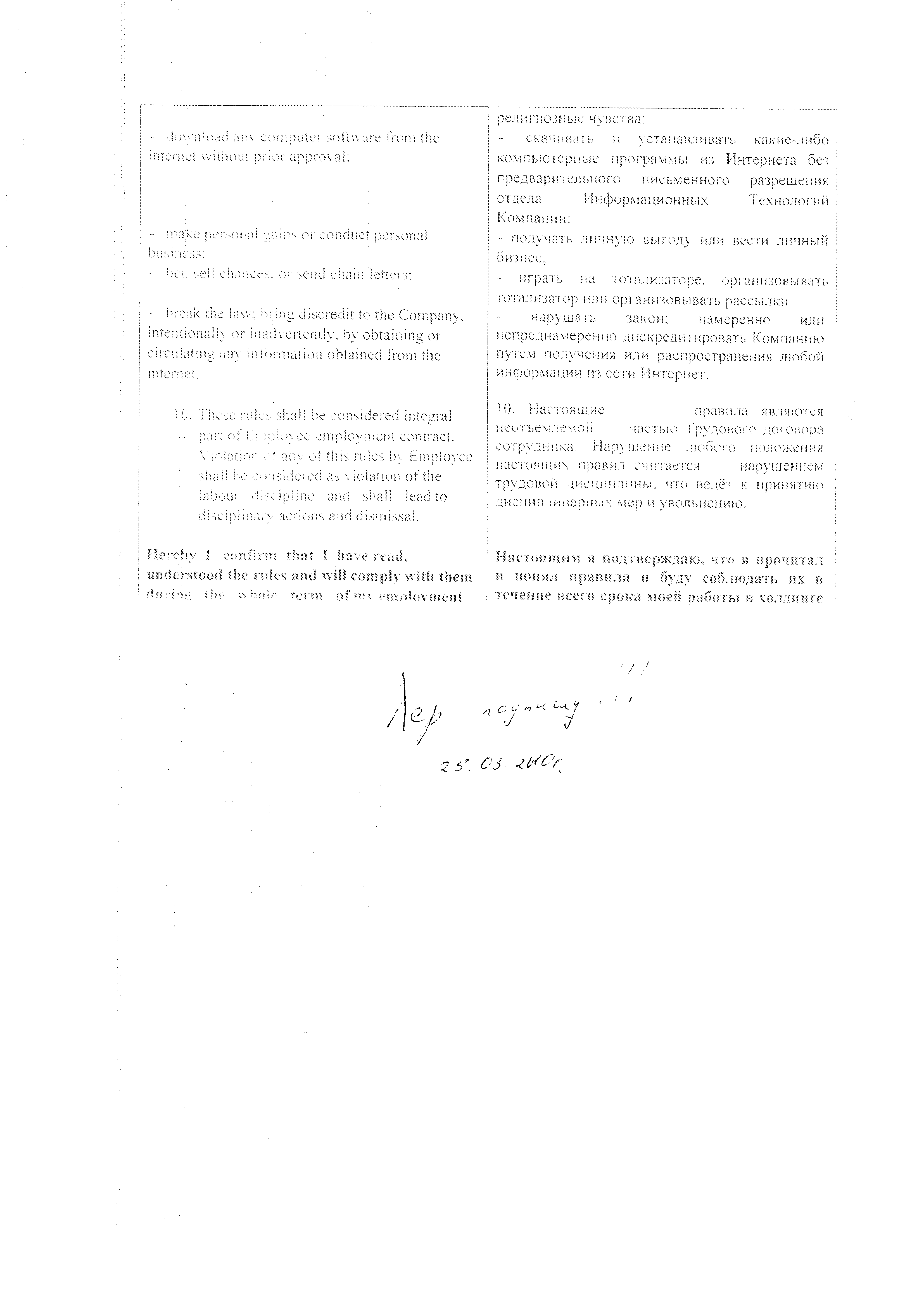 И насколько я понял из елекак отсканенного документа там идет речь о том что в случаи проверки все левое нелицензионное ПО которое ты ставишь и будет списыватся на тебя, а не на работодателя.