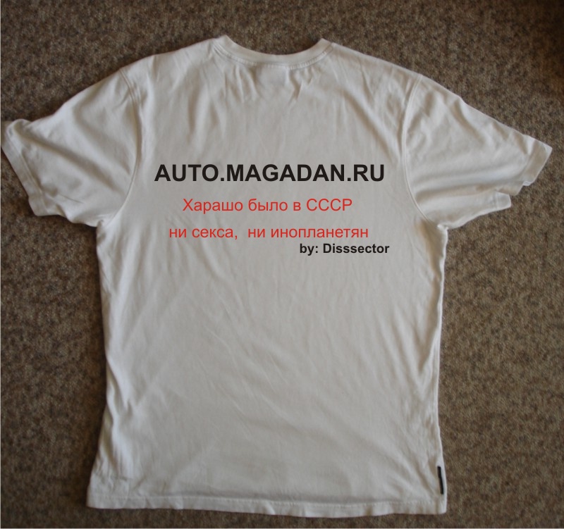 И так предлагаю первый вариант футболки с цитатами. Жду ваших предложений по расположению, шрифтам, цветам и прочим. Не забываем, что максимальный размер картинок для форума - 1024 пикселя по длинной стороне. P.S.: фирменный цвет для футболки с цитатой - БЭЛЫЙ!! цитаты уже есть? -------------------- куплю Ниву, недорого. 892Ч69287О5