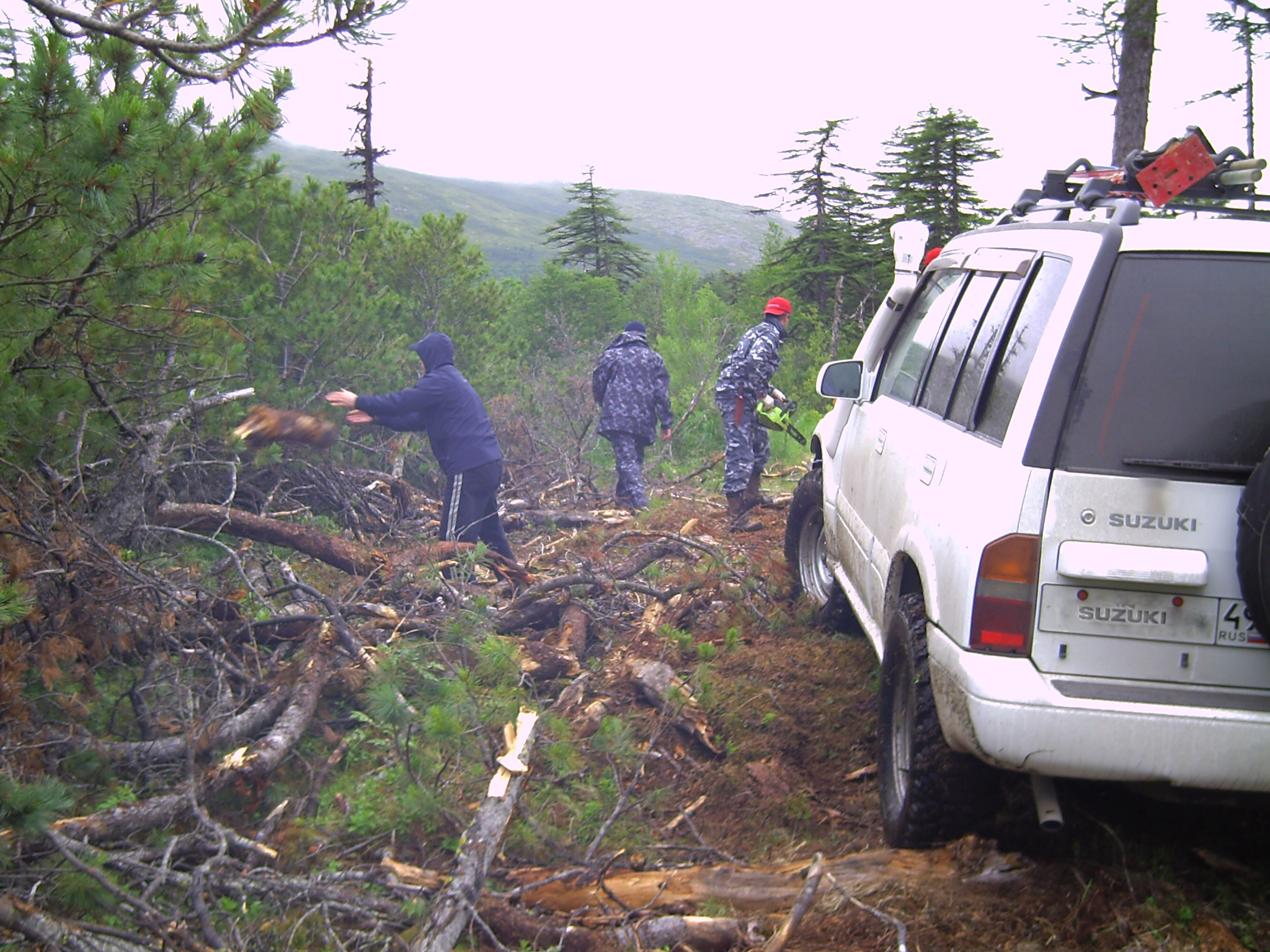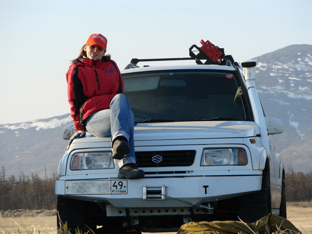 Приобрел я сей агрегат целенаправленно, для небольшой подготовки и дальнейших поездок в малодоступные уголки нашего края. Этим везунчиком оказался обычный (не Хели-Хэнсон, или Голдвин) 5-ти дверный Эскудо 1997г.в. (TD 01W) с ДВС 1,6л (G16A). Отъездил уже год и сделал какие-никакие выводы. Ну, во-первых, хотелось бы указать основные МИНУСЫ: 1.Полное отсутствие и даже намёка на какой-либо комфорт. 2.Большой расход топлива, относительно объёма ДВС (1,6). 3.Высокий уровень шума. 4.Очень низкая теплоизоляция. 5.Плохо заводиться при морозе свыше -20 С 5.Небольшой размер багажного отсека. 6.Тесноват, для человеческих особей с ростом выше 175 см и весом более центнера. Теперь ПЛЮСЫ: 1. Вес авто (1,2т) 2. Маневренность. 3. Полноценный полный привод, без межосевого диференциала (на некоторых моделях есть LSD редуктор заднего моста). 4. Простота конструкции. 5. Наличие рамы 6. Дешевизна расходных и запасных частей. 7. И самое главное, это его НАДЕЖНОСТЬ и неприхотливость. Читая все выше изложенное, любой разумный человек способен сделать для себя должные выводы. Моя точка зрения такова, что Эскудо - это класс автомобиля, где-то выше любого городского паркетника, но ещё не полноценный Жип. Однако довольно просто доводиться до состояния Жипа, с помощью болгарки, молотка и напильника. А так же с применением запасных частей как от других иномарок, так и от отечественных авто. Данный автомобиль ни в коем случае нельзя сравнивать с Хондой CR-V, HR-V; Тойотой RAV-4, или Ниссаном X-trael. Его "единомышленники" это брат Джимни, Сан-Янг Корандо и конечно Нива, которая и явилась стимулятором для создания Эскудо. Все это применимо к автомобилям до 2000 г.в.. О Последней модели Эскудо ничего не могу сказать, кроме того, что рама у них теперь гибридная и выглядит он достойно. Однако за такие деньги я бы лучше купил Сурфа, тогоже года выпуска. Все равно на них только по городу кататься Мой авто притерпел следующие изменения: Сначала был сделан 2" лифт подвески, с заменой задних амортизаторов, после чего вкатились колесья 235/75 R15. Это позволило несколько раскрыть его внедорожные качества, а так же изменить границы маршрутов. После, был снят родной передний бампер вместе с кенгурином и на этом месте появилась лебедка на 3т и цельно-металический бампер (толщиной 4мм). Долее последовала инсталяция Шнорхеля, а так же дополнительной защиты картера и переднего редктора. Сейчас в задний мост внедряется LSD редуктор. И, пожалуй, всё. Все эти изменения позволили мне неоднократно добраться без посторонней помощи до бухты "Светлой", так же на 18 плес р.Армань, оз.Чистое, оз.Мак-Мак и многие другие интересные места. Однако, после дурного влияния таких как ДЮЙМ и ему подобных, прийдется Эскудику притерпеть ещё некоторые изменения в конструкции, а именно Боди-лифт 3"-4" и примерить на себя колеса размером 33-14,5/15 -------------------- Главное в экстремальном отдыхе-вовремя заметить, когда заканчивается экстрим и начинается полная Ж@па!