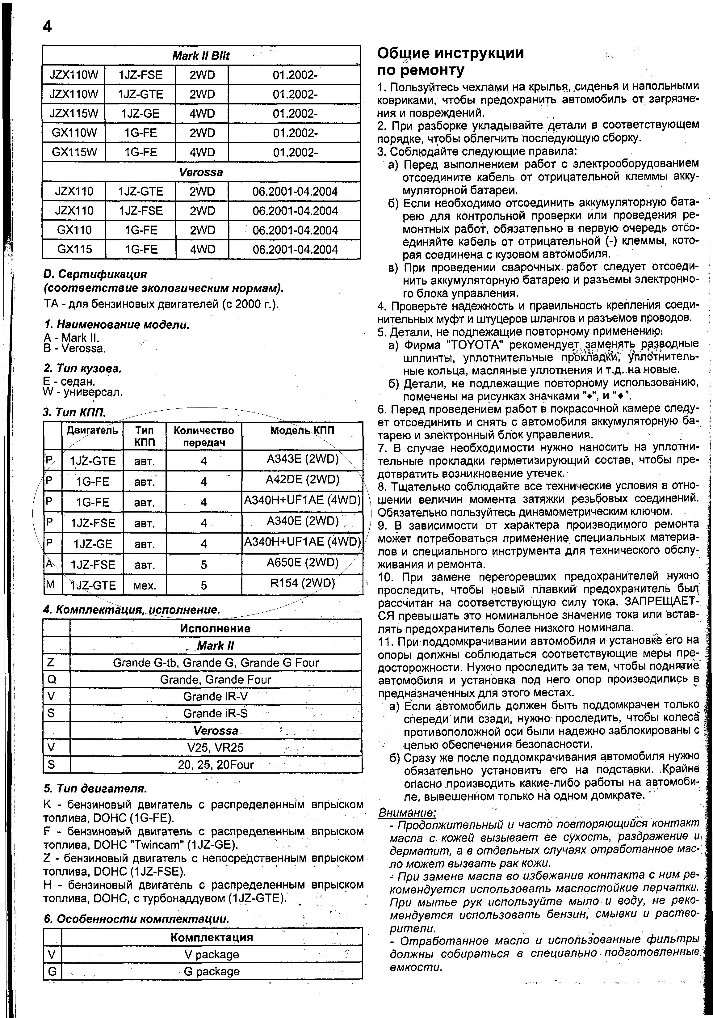 Toyota Mark X октябрь 2009 - Седан правый руль GRX130, GRX133, GRX135 Осенью 2009 года было представлено второе поколение стильного комфортабельного седана Mark X. В основе концепции модели лежит комплексная идея динамичности, актуальности и безупречности вплоть до мельчайших деталей. Значительно улучшена общая управляемость, внесены изменения в конструкцию шасси, что добавило машине спортивной динамики. Модель комплектуется двигателем V6 DOHC рабочим объёмом 2,5 л либо 3,5 л. Эффективнее стало расходоваться топливо. Так, заднеприводный вариант модели с двигателем 2,5 л в режиме 10-15 употребляет 7,7 л на 100 км, а с 3,5-литровым двигателем - 9,8 л на 100 км. Модель комплектуется 6-ступенчатой автоматической трансмиссией. Доступны три модификации, отличающиеся устанавливаемым оборудованием: "стандартная", "спортивная" и "премиум". (Октябрь 2009 г.) ссылка доступна только зарегистрированным 120/125 Toyota Mark X ноябрь 2004 - сентябрь 2009 Седан правый руль GRX120, GRX121, GRX125 Как известно, семейство автомобилей Mark II подошло к такой точке своего развития, когда должно было появиться на свет уже десятое поколение. Было решено в ознаменование этого события внести изменение в название и заменить порядковый номер II номером Х (латинские цифры). Эта новая модель заняла своё место в ценовой категории «выше среднего». Она выполнена на общей с моделью Toyota Crown платформе, оснащается шестицилиндровым V-образным двигателем с рабочим объемом 3 либо 2.5 литра. К двигателям прилагается 6-ступенчатая коробка передач типа Super ECT, в которой предусмотрен режим ручного переключения. Если учитывать то обстоятельство, что нынешняя модель выпущена в развитие модельного ряда Mark II, то выходит, это – первый случай, когда компания Тойота разрабатывает модель такого класса с 6-цилиндровым V-образным мотором. И еще, судя по всему, было решено не ограничиваться формальной заменой «двойки» на «десятку», а пойти далее и выбрать для новой машины до этого невиданный внешний вид. Чтобы убедиться в правдивости подобного утверждения достаточно только взглянуть на переднюю часть машины, на то место, где прямо из-под бампера и вплоть до капота тянется рельефная линия в виде буквы V. Затем нужно глянуть на 3-х секционные передние фары, затем обойти машину сзади, чтобы открылся вид на выхлопную трубу, расположенную под массивным задним бампером. Все это стоит увидеть. А затем сесть в салон, наполненный кожаными, металлическими и деревянными элементами, в частности, оценить среднюю консоль передней панели. И только тогда поймешь, что это такое, качество отделки, как его понимают дизайнеры компании Тойота! Автомобиль спортивной комплектации «S package» оборудован 18-дюймовыми алюминиевыми колесными дисками и тормозами спортивного типа, специально перенастроенной подвеской, аэродинамическими деталями кузова и прочими «приятностями». Стоит заметить, что система полного привода (4WD) устанавливается только на модификацию с 2.5-литровым мотором и 5-ступенчатой автоматической коробкой передач. 110/115 Toyota Mark II Blit январь 2002 - май 2007 Универсал правый руль GX110W, JZX110W, JZX115W, GX115W В автомобиле Toyota Mark II Wagon Blit была реализована идея создания семейного универсала класса L. Рынок на тот период времени был заполонен моделями с тремя рядами сидений, и Toyota Mark II Wagon Blit вышел на рынок под флагом новой концепции. Mark II Wagon Blit – это заднеприводный спортивный универсал пре