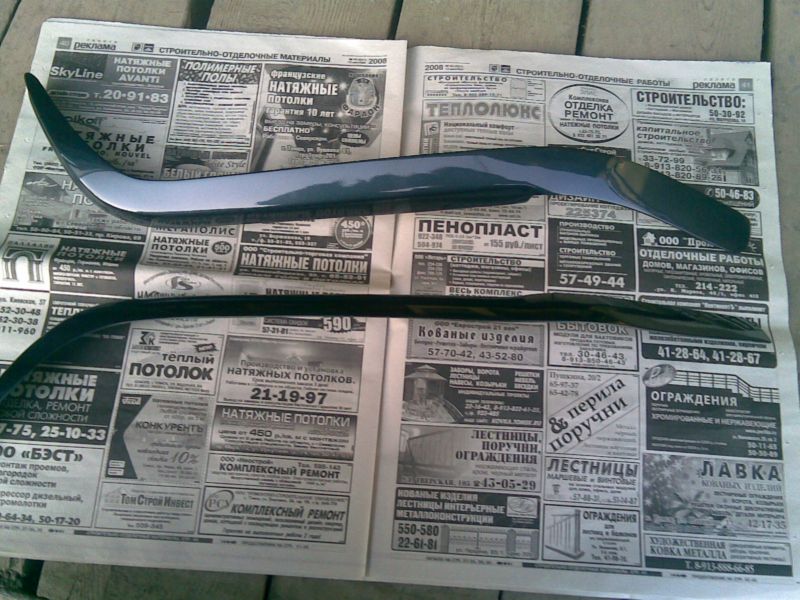 Фото № 1, 2: Подготовка: Эбоксидка, стекловолокно, монтажный скотч, канцелярский нож, маркер, резиновые перчатки, кисточка, двухсторонний скотч, селафан, ну и вродебы всё. Фото № 3: Пациент Чайзер 1JZ-GE, чёрный. Фото № 4: Отмыть фары и снять. Фото № 5: Предпологаемое место реснички обклеиваем монтажным скотчем, остальное селафаном (чтоб клей не папал). Фото № 6: Рисуем необходимый контур (какой вы сами хотите, хоть буквой зю), обводим его маркером. Фото № 7: Разводим клей (на упаковке всё написано). Фото № 8, 9: Находясь в резиновых перчатках наносим тычковыми движениями кисточкой сперва на ранее наклееный скотч клей, накладываем стекловолокно и продолжаем начатый процесс. После чего я оставлял сохнуть в течении 1,5 час. Фото № 10: второй слой (аналог первого). Фото № 11: Третий слой. Фото № 12: После того как высохло (ушлли 1 сутки), отделяем от фары то что получилось (не очень трудоемкий процесс). Фото № 13: Вырезаем ножницами или полотном от ножовки по металлу и немного шлифуем, потом шпаклюем. Фото № 14: Первая примерка после шпаклевки. Фото № 15: Красим. Фото № 16: результат после покраски. Фото № 17: Наклеиваем двухсторонний скотч. Фото № 18, 19, 20: Результат. © drom.ru Сообщение отредактировал Hurricane - 22.3.2012, 21:27 -------------------- ![]() |
