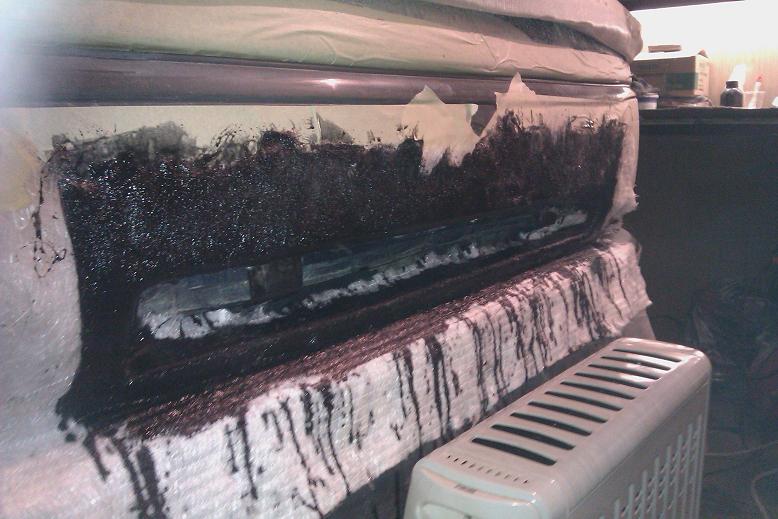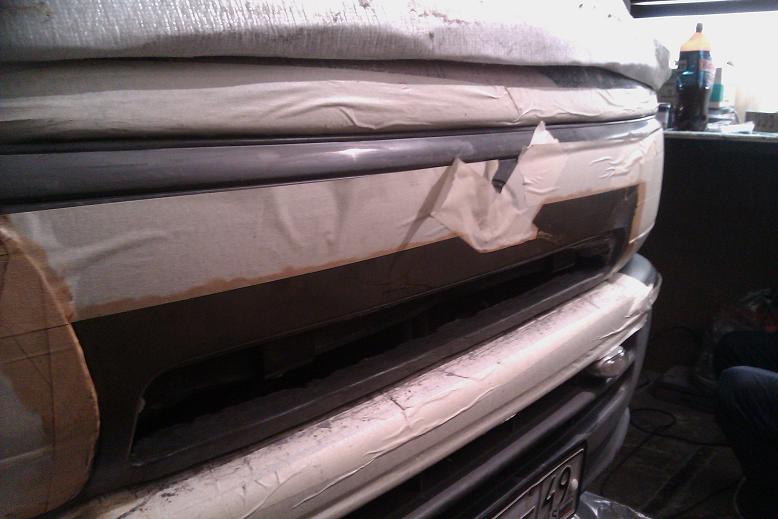 Набрали пива и вперёд!:) Не стал изголятся делать супер решетку (время столько нет), решил восстановить старую после маленькой аварии. Решетка развалилась на 5 частей, крупные части склеил а остальное будет из стеклоткани. Недостающие части решетки слепил из пластилина и прям на машине делаю матрицу. Завтра встанет смола, буду выклеивать стекломат. -------------------- 89833066251