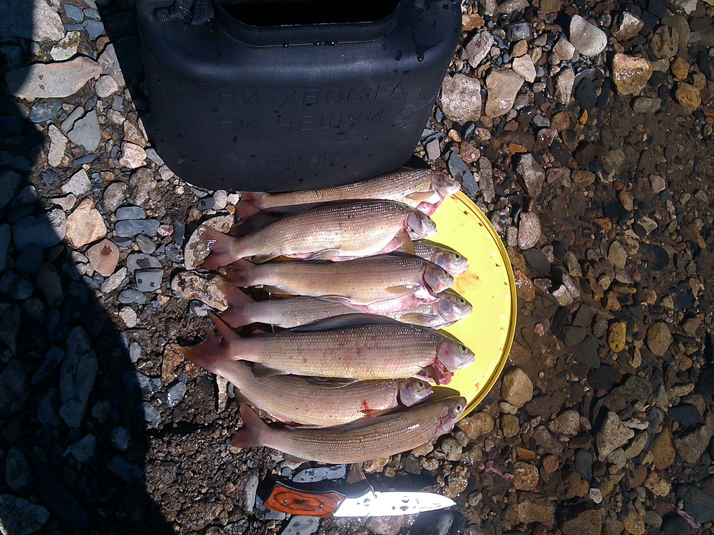 На Буюнде пробовал в деле воблеры Rapala и Chimera. Погремушка от Химеры весьма заманчива для хариусов-сковородочников и крупнее, также рапала показала себя цепкой приманкой, четверка весом в 2 грамма по поведению в воде лучше химеры и в отличие от неё не перекручивает леску. Уловисты обе. Хариус активно клевал на оливково-зелёную рапалу, химера же предпочиталась медно-серебристая. На обратном пути поймал на муху ещё пяток сковородочников.