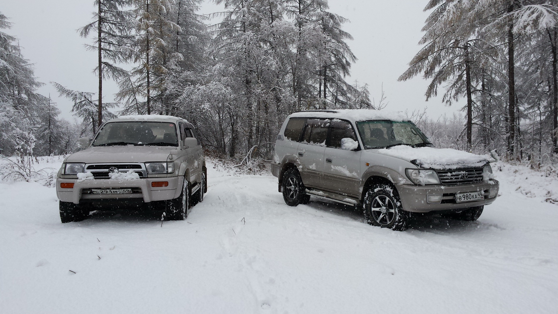 Решили закрыть для себя рыболовный сезон лето-осень, так как скоро заезжать на месячную вахту. Основное ожидание от рыбалки: хорошее настроение, ночевка, чай на костре, ловля рыбы (хотя бы на уху) и вечерняя беседа за рюмочкой коньяка или водочки. Решили ехать с ночевой с 29 сентября, но штормовое предупреждение и ночной дождь отменил поезду. Поехали 30 , хотя дождь со снегом передавали почти на всю неделю. После долгих дебатов решили ехать на второй Олений, так как летом из нас никто там не был и хороший вариант поймать рыбу на уху. Страшновато было, ведь могло размыть или замести дорогу, прогноз погоды был неутешительный. По дороге нам испортила настроение погода на Арманьском перевале, он был в снегу, скользкий + град. Но ближе в Армани все изменилось: солнце и почти сухая дорога. Дорога до первого Оленего хорошая, небольшие лужи. Заехали на полуторный Олений (наверное он, так как мы там впервые) подходящих мест для рыбалки не нашли, большая и мутная вода, покидали в пару местах, рыбы не поймали и поехали на второй Олений. Лужи стали глубже и длиннее, пару луж неприятных, раз волна дошла до дворников (у меня шноркеля нет). На втором Оленем место для рыбалки нашли не сразу. Выехали на большой плес, были видны редкие всплески рыбы. Решили ловить на блесны, на втором забросе зацепилась большая рыбина, но сорвалась. Примерно за полтора часа ловли поймали два хариуса и четыре мальмы, три из которых больших размеров+ четыре схода. С наступлением темноты резко перестала клевать рыба. Но главное, хорошее настроение и рыба для ухи. Сварили уху по строгому рецепту с обязательным маканием головёшки в котелок и традиционной рюмочкой водки. В часов 10 вечера пошел снег, но сразу таял. Утром продолжал валить сильный, мокрый снег. Рыба почти не клевала, поймали за час одного харитона и небольшую мальму. В 10 утра решили ехать домой, снега лежало около 10см, следы дороги по речной долине замело, выезжали по треку записанному на GPS. Сам выезд с речки до основной дороги Оленего нашли не сразу, так как не узнали: его перекрыли согнутые под тяжестью снега кусты ивняка. Время следования по основной Оленей дороги составило 3.5 часа. Трудная часть дороги была до Первого Оленего, т.к сильно затрудняли передвижение перекрывающие дорогу сломанные деревья и согнутые кусты под тяжестью снега. Снег с них полностью накрывал первую идущую машину сугробом, после чего сразу начинали потеть стекла в машине, ведь засыпало решетки вентиляции возле дворников. Проблемой был еще проезд луж, на поверхности которых лежала снежная шуга толщиной 5-10см, которая забивала все пространство под радиаторной решёткой и бампером. Вес машины сильно увеличился (примерно под бампером и решёткой набилось 50-80 кг снега), я боялся, что бампер оторвется от тяжести. Номер и железную его рамку свернуло в пропеллер. Снег валил стеной, не переставая, к подъезду к первому Оленему высота снежного покрова была около 30 см, полностью скрыв полотно дороги. После первого Оленего склоненных кустов не стало, поэтому дальше ехали без проблем. В общем, если не считать обратной дороги, закрытие нашего сезона прошло хорошо!!! Небольшой фрагмент видео |