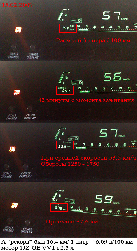 Цитата(Maledict @ 16.2.2009, 17:06) ссылка доступна только зарегистрированным Никогда не ставил себе целью выкатиться в самый мелкий расход, ты когда 6ть литров получил ? Зима/лето ? По какой дороге ? На каком бензине и на какой заправке заправлялся и с какой скоростью ты ехал ? Да в принципе для 2.5 мотора нормальный расход по городу, особенно если учесть что 30% этого расхода составляют прогревы. Некоторые по 25 литров сжигают. 6 литров (те что на фото вые) получил вчера 15.02.2009. В Магадане в это время зима, температура -20 цельсия в среднем. Бензин 92, заправка одна - зеленая на Ленина (после автовокзала которая недоезжая красной на кольце). СКОРОСТЬ ты можеь увидеть если еще раз откроеь фото, прикреплю тебе повторно. |
