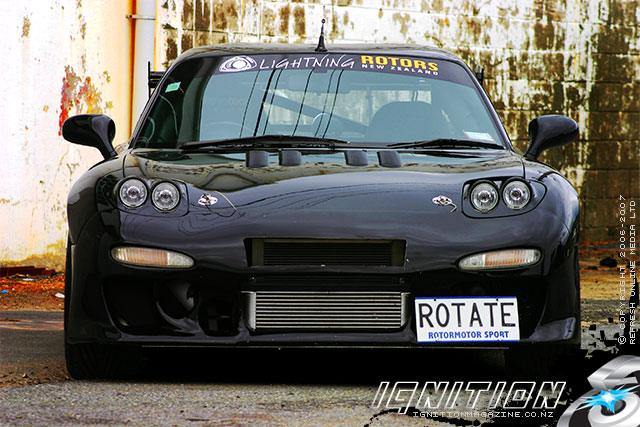 Шейн, механик по профессии, специализируется на роторных двигателях, занимаясь созданием монстроподобных роторов для своих клиентов. Так что когда дело коснулось выбора собственного средства передвижения, он пал на RX-7, и это совсем не удивительно. Окончательно все встает на свои места, когда узнаешь, что Шейн является ярым поклонником трековых состязаний, ну а поскольку «Бэт-мобили» RX шестой серии и выше известны своим низким центром тяжести и непревзойденным для заднего привода сцеплением с дорогой, они являются идеальным вариантом для отжига на гоночном треке. Учитывая все это, Шейн практически не колебался и быстро приобрел для себя относительно нетронутый экземпляр Mazda RX-7. Но в таком нетронутом виде авто просуществовало очень недолго. Шейн, учитывая специфику избранной профессии, имеет массу возможностей построить интересный аппарат, и раз уж он собрался делать для себя игрушку, энтузиазм его безграничен. Практически сразу Шейн собственноручно вытащил из RX-7 двигатель, 13В, разобрал его и отстроил заново, установив дополнительное оборудование, добавляющее резвости. Балансировка вращающих компонентов 6 серии обеспечивает гармоничное сгорание, а также, что более важно, обеспечивает более надежную работу двигателя, известного своим непостоянством. Камера тоже не избежала вмешательства: диаметр выпускного канала сильно расширили, обеспечив более чем щедрый отвод отработанных газов в массивную турбину Т04Z. Изготовленный на заказ впускной коллектор Proform позволил разместить турбину вместе с вейстгейтом Trust на блоке. Зажигание налажено, отработанные газы уходят из блока через 3-дюймовый выпуск, а сжатый воздух поступает непосредственно в интеркулер RWR Barrel водно-воздушного типа охлаждения. Он дополнительно охлаждает горячий воздух, прежде чем тот попадет в двигатель. Интеркулер такого типа хоть и весит несколько больше обычного за счет радиатора и бачка для воды, но имеет ряд преимуществ: в отличие от интеркулеров, охлаждаемых только воздухом, он обеспечивает постоянное снижение температуры при отсутствии задержки в охлаждении, с которой сталкиваются обладатели воздушных интекулеров. Роторные двигатели известны своим и без того нескромным аппетитом, ну а обладатель таких вызывающих пропорций и подавно будет очень требовательным в плане питания. Проблему решили при помощи установки топливного насоса SX, который качает горючее из штатного и дополнительного бензобаков. Завершают картину форсунки на 1 600 куб. см и дополнительные на 550 кубиков. Контролировать весь процесс было поручено более чем компетентному в этом вопросе блоку Haltech E6k, который после небольшого вмешательства мастеров из Japanese performance настроили на внушительные 462 л.с. при давлении 1,17 Бара. Напоминаю, настройка производилась с учетом использования машины на гоночном треке, а значит потенциал у нее намного больше, стоит Шейну лишь захотеть… Но все это поголовье под капотом будет совершенно бессмысленным без надлежащей подвески и трансмиссии. Прекрасно зная об этом аспекте, Шейн снабдил свою RX множеством отличных деталей, включая сверхлегкий маховик Night Sport (3,17 кг) и двухдисковое сцепление. Благодаря этим деталям новая коробка OS Giken не проскальзывает, и вся мощь двигателя без потерь передается на дифференциал повышенного трения Mazdaspeed 2 Way. Подобная комплек