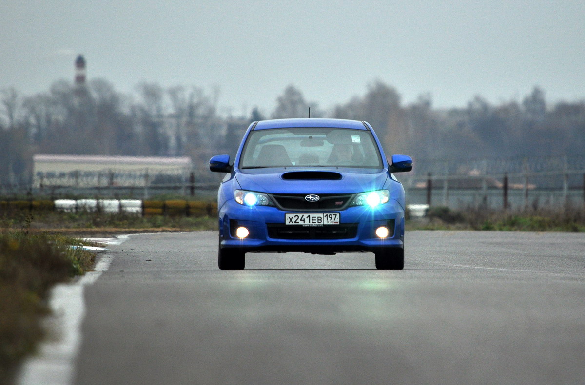 В 2007 году появилось новое поколение Subaru Impreza. Причем, впервые этот автомобиль показался публике в образе хэтчбека. Естественно, был и седан (а вот универсал исчез). И все бы ничего, да вот только разработчики решили выпустить версию STI именно на базе пятидверной модели. Дескать, она лучше подходила для разного рода спортивных требований, нежели седан. Однако поклонникам марки разница между двумя этими типами кузовов с самого начала казалась умозрительной. Да и привыкли все к тому, что именно седаны STI (ну, или купе — в некоторых случаях) «рвали» всех на спортивных трассах, тем самым обеспечивая машине успешные продажи и всенародную любовь. Иными словами, тема хэтчбека STI с самого начала показалась многим слегка неполноценной. И вот, в машине 2011-го модельного года, под натиском общественности, досадный пробел был устранен. В результате мы оказались на подмосковной гоночной трассе «Мячково», для того чтобы собственноручно (и ножно) ознакомиться с вернувшимся в строй седаном STI, а заодно и оценить метаморфозы, которые произошли с этим автомобилем после обновления. Во время теста хэтчбека STI меня не покидало ощущение, что подвеске этого автомобиля не хватает окончательной жесткости. Что она чуть-чуть «недозажата». Возможно, если бы я ездил преимущественно по грунтовке или гравийке, то ходовая STI показалась бы жесткой, однако эти автомобили, несмотря на все раллийные гены, более чем в 90 процентов случаев активно эксплуатируются на асфальте, поэтому-то и требования к ходовой у потребителя соответствующие. Вот почему ревизия подвески оказалась не просто доводкой. Ее конкретно перетряхнули. Поставили новые стабы — каждый на миллиметр толще «предшественника» (21 мм спереди и 19 мм сзади). Ревизии подверглись пружины — передние стали на 15,6% жестче, а задние — на все 53%. Амортизаторы тоже перенастроили, однако для них точные цифры создатели STI решили не указывать. Также чуть меньше стал клиренс, его урезали на 5 мм. Задний подрамник получил новые, более жесткие втулки, что позитивным образом сказалось на точности и остроте руления. В передней подвеске задние сайлент-блоки нижних рычагов и вовсе устранили, заменив шаровыми опорами. При том, что клиренс уменьшился, ход подвески как спереди, так и сзади увеличился. Также тонкой настройке подверглись углы установки всех колес. Нельзя не сказать и о том, что каждое колесо в сборе сбросило 2 кг — неподрессоренные массы похудели в итоге на 8 кг. Новые колеса легкие, из алюминиевого сплава. Также опционально можно заказать диски BBS, которые вряд ли будут тяжелее стандартных. Еще одним важным техническим дополнением (и столь же противоречивым) стало внедрение в STI автоматической коробки передач. Противоречивым лично мне это решение кажется по двум причинам. Во-первых, я противник АКПП на машинах типа STI (это противоречит их сути). Второе — даже если уж и ставить в пару к мотору что-то «автоматическое», то это должна быть никак не 5-ступенчатая коробка с гидротрансформатором. Та же Mitsubishi сейчас предлагает для Evo X робота с двумя сцеплениями. Такая коробка, с возможностью очень быстрых, почти ударных переключений, гораздо лучше соответствует взрывному характеру форсированного трубомотора. А тут… Я специально сел сначала именно в версию с «автоматом». Для того чтобы после «механики» такая машина не показалас