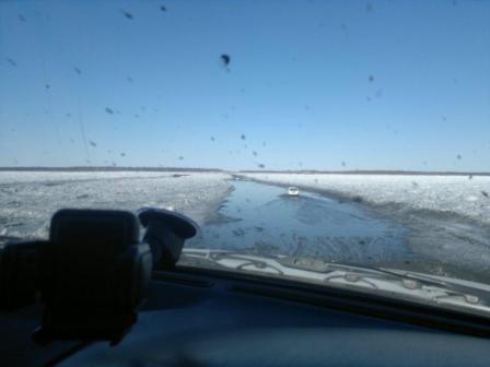 До двадцатых чисел апреля можно свободно ездить.В 2010г проходил переправу 23апреля, уже шла верховая вода.Местные носятся и все майские праздники.