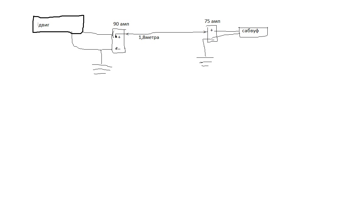 провод между аккумуляторами идёт цельный без разрезов от клеммы до клеммы, а минус с 75ки идёт сразу на кузов авто, я думал его соеденить минус с минусом 90стки. Схема такая как я и рисовал 90стка стоит на штатном месте (авто хайс) и подключена по заводскому, а 75ка стоит под задним рядом сидений и соеденёна цельным проводом +, и минус на корпус авто ближе к багажнику на саб идут + и - напрямую с 75ки. -------------------- [color="#00ffff"][/color]