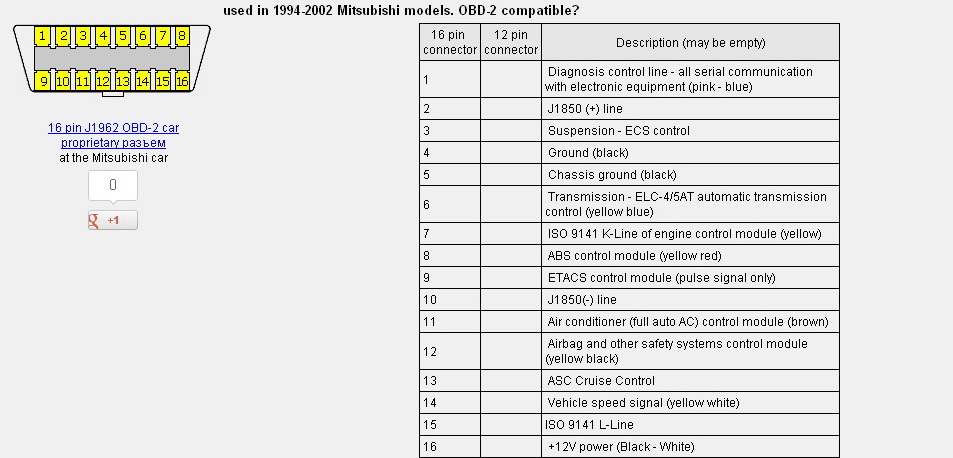а книжка по Мираж-Галантам какого года? потому как у меня сплошь везде на MMC указан 12-пиновый, ссылка доступна только зарегистрированным PS. Порылся в анналах. Ты прав. Давай теперь сверим распиновку по твоей книге? совпадает? тогда все верно, когда ты замкнул 1 контакт, то диагностируются все цепи, поэтому ошибки выдавало и на движок, и на ABS. сорри, что невольно пытался сбить тебя с толку, не учел, что разъем может быть другим. Книга у тебя бумажная или в эл. виде? Сообщение отредактировал Торонага - 22.4.2012, 18:09 |
