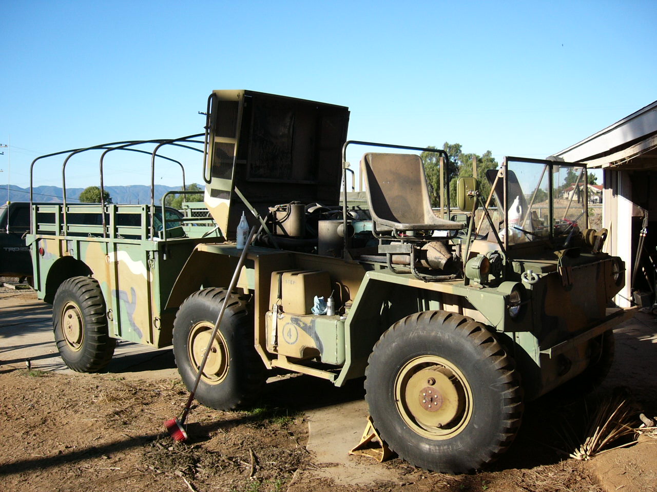очень интересный по-моему аппарат.. тока вот без кабины жаль.. вот его ТТХ WeightsCurb weight 7,300 lbs. Payload 2,900 lbs. Gross weight 10,200 lbs. Front axle GVW 2,745 lbs. Center axle GVW 3,900 lbs. Rear axle GVW 3,555 lbs. DimensionsLength 226.6 in. Width 83.80 in. Height (GVW) 90.80 in. Reducible height (GVW) 65.00 in. Tread 72.00 in. Ground clearance 15.00 in. Pintle height 22 in. EngineMake Detroit Diesel Series 3-53 Type Liquid cooled, vertical in-line, two cycle, three cylinder diesel Displacement 159.3 cubic in. Horsepower 103 HP at 2,800 RPM Torque 217 lbs-ft. at 1,500 RPM Firing order 1-3-2 TransmissionType Manual shift Speeds Four forward, one reverse Synchromesh shift 2nd, 3rd, 4th gears 1st gear ratio 7.06:1 2nd gear ratio 3.58:1 3rd gear ratio 1.71:1 4th gear ratio 1.00:1 Reverse gear ratio 6.78:1 Lubricant capacity 5.5 pints TransferRanges High – low High ratio 1:1 Low ratio 1.79:1 Torque rating 2,500 lbs-ft. Lubricant capacity 4.5 pints Differentials (front, center & rear)Type Dual pack limited slip Ratio 5.57:1 Lubricant capacity 4 pints Electrical SystemVoltage 24 VDC Amperage 60 A Battery type 6TN, 12 V, 100 AH Battery quantity two, series connected Alternator 24 VAC 60A Fuel SystemCapacity 40 gallons (2 tanks, 20 gallons each) Recommended fuel Diesel VV-F-800 Jet MIL-J-5624 CITE MIL-F-45121A ну и ссылочка.. ссылка доступна только зарегистрированным а вот на ютубе как он ездит.. ссылка доступна только зарегистрированным ссылка доступна только зарегистрированным Сообщение отредактировал DvK - 28.12.2011, 9:46 -------------------- |