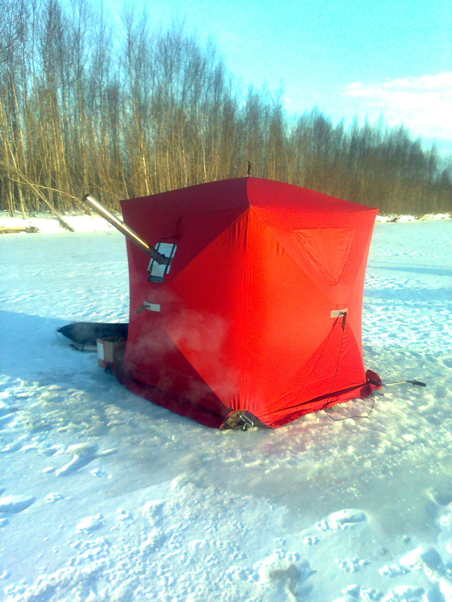 Андрей Викторович загляни в Фарт на гагарина там мне дядька долго достойную палатку описыввал у него и фото есть.Вроде штатовская.. возит под заказ.. Палатка двухслойная и весит 16кг ясно понятно что не просто клеенка. Кстати к ней идет докомплектация под снегоход ценнник вроде приемлем