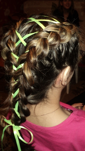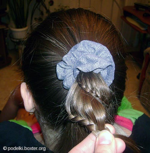 Как делаем эту прическу: Разделяем волосы на две части,ровненько, и плетем косы "наоборот", выпуская петли только с внешнейстороны через три-четыре перекида. На каждый перекид делаем подбор с обеихсторон. Так плетем до конца, оставляя хвост, закрепляя резинкой. Выпускатьпетли с одной стороны нужно до конца плетения. То же проделываем с другойстороны. Косы плетем поближе к пробору, иначе шнуровка получится слишкомширокая. Стараемся плести равномерно, чтобы было одинаковое количествоперекидов на обеих косах. Закрепляем две косы в один хвост. Резинку нужно братьв цвет ленточки, чтобы ее не было видно. Теперь делаем шнуровку. Берем шпилькуи ленточку. Круглый конец шпильки продеваем с внешней стороны подневытянутый перекид (тот, что ближе кпробору), в образовавшуюся петлю-шпильку продеваем нашу ленточку и вытягиваемшпильку из косы, протягивая ленту через перекид. То же делаем с другой стороны.Так "шнуруем" до конца, перевязываем резинку и завязываем симпатичныйбантик. Любуемся и хвалим себя) Сообщение отредактировал yuli - 10.5.2012, 7:15 -------------------- Стерилизуйте дворовых и домашних любимцев!