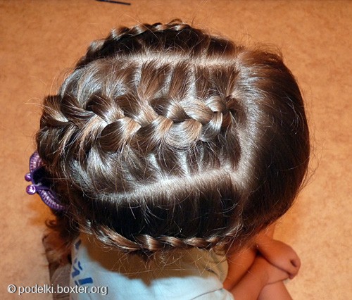 Наши модницы плетут не одну, не две, а много косичек. Это и просто заплетённые волосы, и украшенные бусинами, ленточками, верёвочками, цветами и всем, всем, всем. Причёска из косичек идёт всем без исключения: и взрослым девушкам, и самым юным красавицам. Причёска "Римская сеточка" 1. Горизонтальным пробором разделить волосы на две части (верхнюю и нижнюю). Нижнюю завязываем в хвост, чтобы не мешала. На верхней части будем делать плетение. 2. Отделяем прядь волос с небольшим наклоном в сторону. Плетем французскую косу, забирая волосы с двух сторон. 3. Отделяем вторую прядь крест на крест к первой. Выполняем плетение французской косы. 4. Аналогично выполняем еще по одной косичке с правой и левой стороны. 5. Оставшиеся волосы заплетаем в более крупные косы, соединяем вместе резиночкой и украшаем заколкой. -------------------- Стерилизуйте дворовых и домашних любимцев!