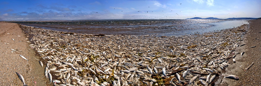 Так я понимаю в лимане(судя по фото) вода ушла а рыба не успела а это вроде на морской стороне