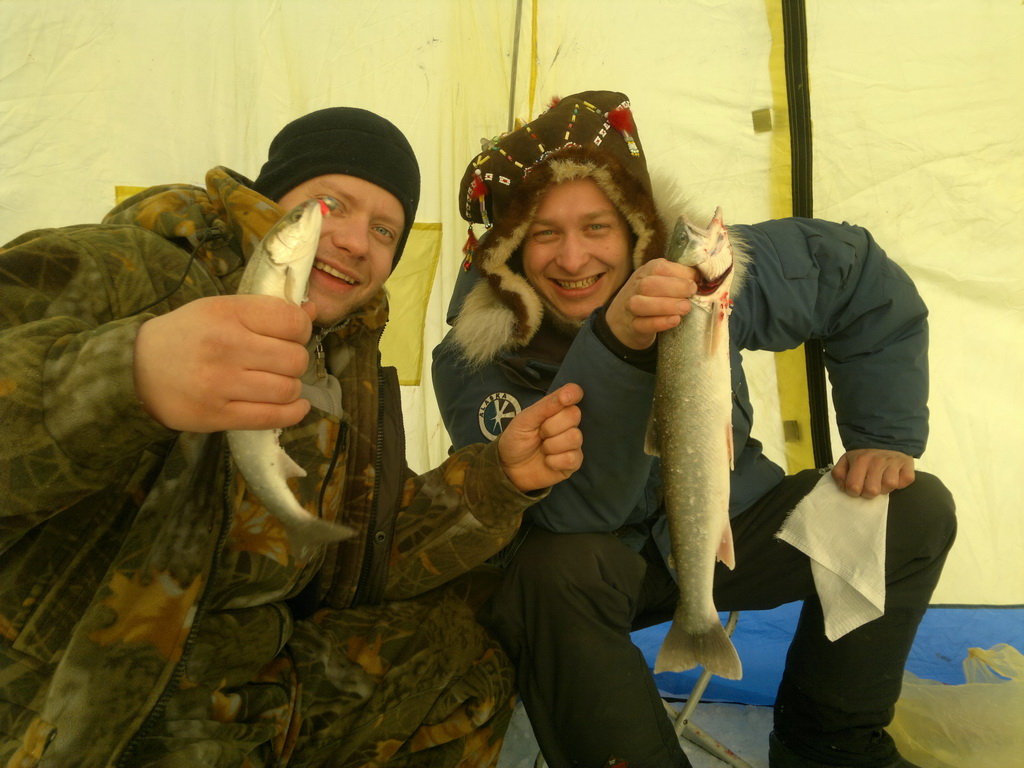 Сегодня в 5 утра двинули на третий. Дорога сносная. Встали на ямке выше Сеймкана, лёд толстый около 2м. воды ~30см. Долбиков почти не было, на троих без малого 100 мальмин, некоторые экземпляры очень даже хороши. Назад собрались в 16:00 По пути встретились 8 самосвалов, которые изрядно попортили дорогу в начале пути (от трассы до 1-ого). спасибо ! действительно приятная новость , порадовали !!!! |