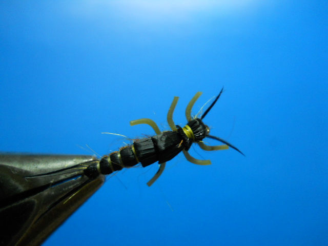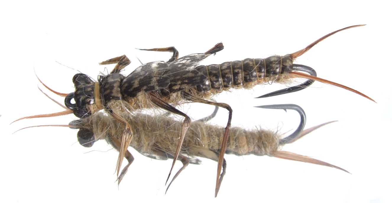 Переколомины (это Чёрная речка их так называет) делаю немного по другой технологии и называются они нимфа веснянки. Разбирал как то из любопытства ихнюю переколомину - материалов использовано минимум, из фирменных только монтажная нить, два кусочка толстой лески, немного нитки из швейного магазина, кусочек плёнки и ножки силиконовые (сделанные ими же) вот и вся муха.
