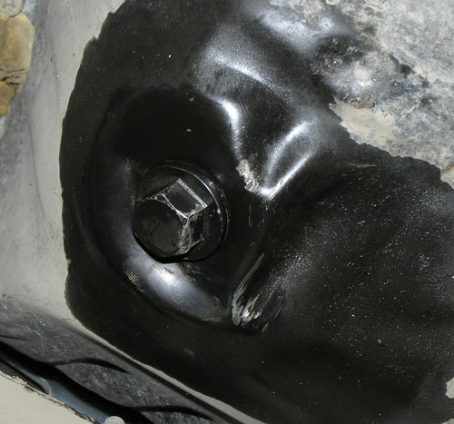 А сейчас расскажу-ка я вам страшилку на ночь! 1_pirate.gif Вчера ездил со своей бабушкой на огород. Когда возвращались обратно, на проселочной дороге на спуске машину раскачало аккуратно в том месте, где на некотором расстоянии друг от друга растут из земли два валуна, и ни один валун я не пропустил - машина тюкнулась по разу о каждый. Сегодня вечером, будучи дома, выглядываю в окошко и замечаю под машиной темную лужицу. Тут же мне звонит никА и тоже сообщает об увиденном. Ладно, посуетившись, я собрал вокруг себя группу поддержки из коллег. Масло на щупе находилось едва-едва выше минимальной отметки. Посовещавшись, мы построили план. Прикупив две литровки масла и холодную сварку, я с одним товарищем поехал в автобусный парк, где, по его словам, "царит коммунизм", и поэтому имеется свободный доступ к эстакаде. При осмотре поддона оказалась, что течь идет из-под пробки (болта). Про деформацию металла в месте расположения пробки я умолчу, на картинке видно. Подкрутил пробку - течь прекратилась. Пока всё, можно считать, что отделался лёгким испугом. Утром посмотрю как будет.