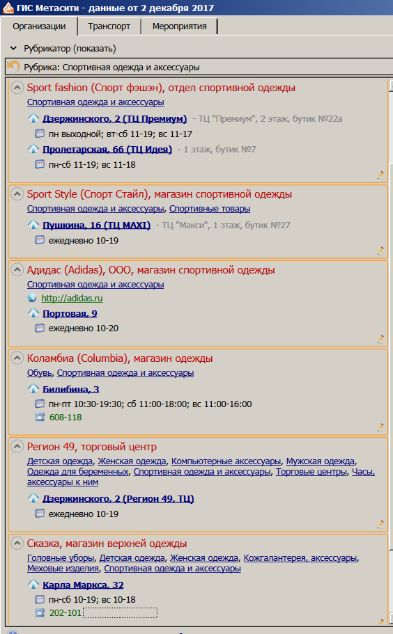 Набери в Метасити "Спортивная одежда и аксессуары" - 15 пунктов выдаёт...