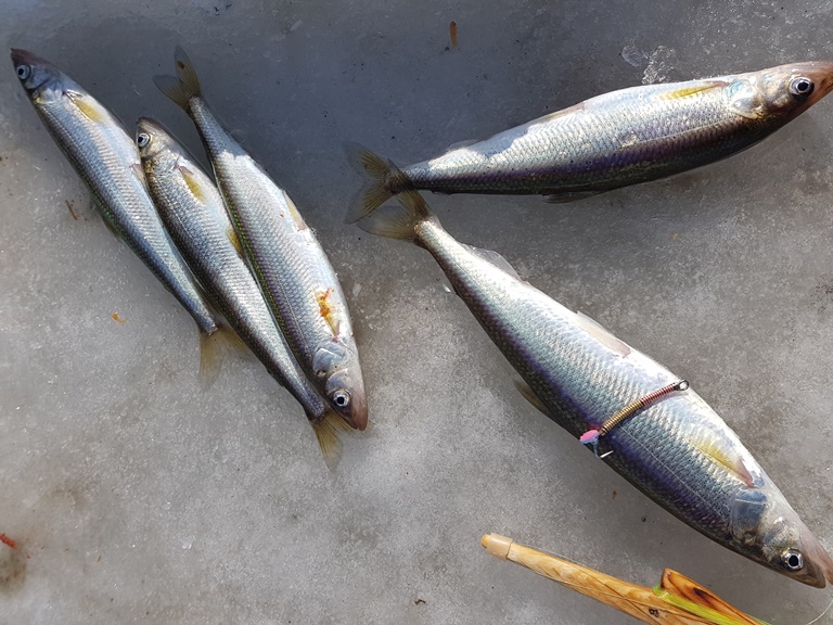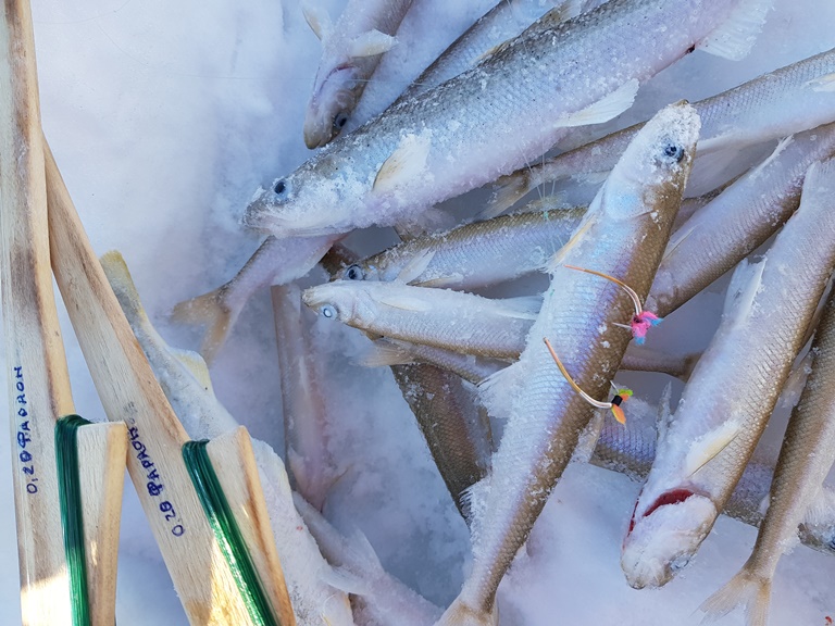 Очень хорошо отработали!!! Ловилось все – зачетный «зубарь» и крупная навага!!! За два с половиной часа – 52 корюшки и 78 наваги, видео отчет прилагается.