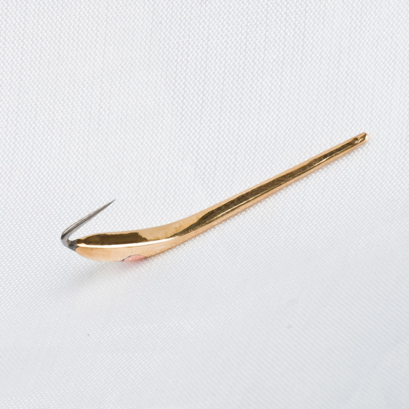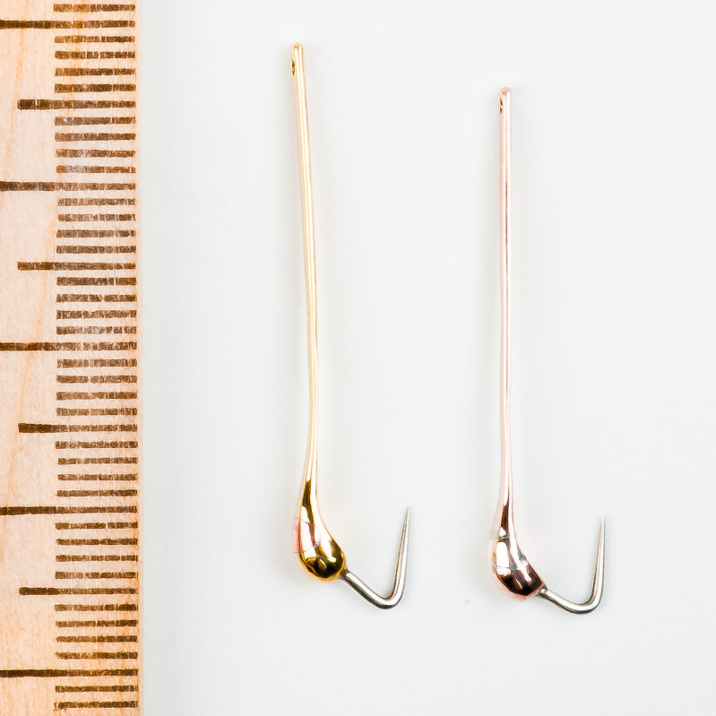 Свои крючки ,без маркетинга, фото нет смысла и так понятно. Материал любого цвета, можно круглый пруток, можно пластинку. Длина 20-35 мм , ширина 1,5-2мм, толщина такая-же.Главное чтобы не гнулись при отцепливании рыбы. Если пруток то надо приплюснуть оба конца, пластинка- оставляем так же, Дальше припаиваем с одной стороны ушко от крючка, с другой собственно говоря крючок, по импортной классификации №8-10, по желанию хотите с бородкой, хотите без. Подчистите излишки припоя, чуть подчистите мелкой наждачкой. Больше можете никогда к ним не прикасаться ни наждачкой ни тряпочкой с пастой никогда. Следите за остриём, чуть затупилось сразу менять.