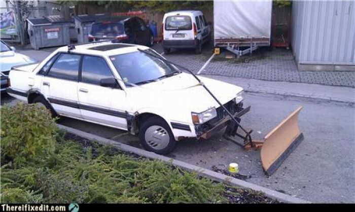 как вариант,вспомнил видео.Типо улетного видео по русски.Короче,прицепленная к авто,тяжелая советская школьная парта,снег счищает на ура.При чем парта лежит на "спине",столешницей вперед,получаеться хороший отвал-скребок.И во внутрь становяться пару-тройку человек-для весу.Ну в целях безопасности,можно заменить живой вес на балласт.Не ну а чё?)