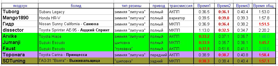 Нажмите для просмотра прикрепленного файлаАбсолютный рекорд сегодняшней трассы у Руса, несмотря на то, что убитый первый круг ему сильно испортил общий результат. А некто Ярослав, несмотря на прибеднения, показал в своей группе лучшее время.