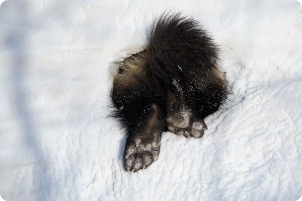 Росомаха передвигается не прыжками. Она ходит как медведь.