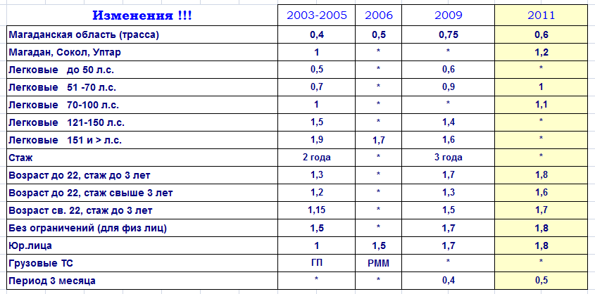 Между тем, с того момента, как обязательное страхование автогражданской ответственности было введено для всех транспортных средств на территории России в 2003 году, сама базовая ставка не менялась ни разу. Тарифы пересматривались всего один раз - в марте 2009 года. При этом в начале июня минфин направил в правительство законопроект об увеличении базового коэффициента.