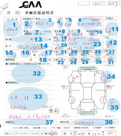 Расшифровка аукционного листа CAA Автомобильный аукцион CAA (Chubu automobile auction)
