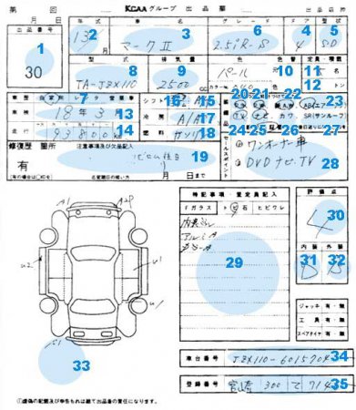 Расшифровка аукционного листа HAA Аукционная площадка HAA Kobe (Hyogo Automobile Auction)
