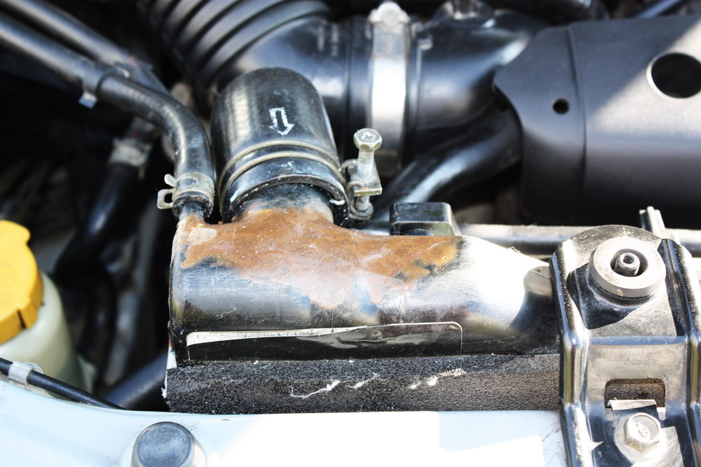 но всё равно стоит криво, я не доволен — буду переделывать! но оставил на месте, сил менять обратно уже нет… а да, байпасс тоже не подходит, пришлось купить шланг подходящего диаметра и соединять шланги под дросселем (не до фото было) на подходе к самке… ни каких китийских BOV, хотя по-пшикать было бы и прикольней, но здоровье двигателя дороже