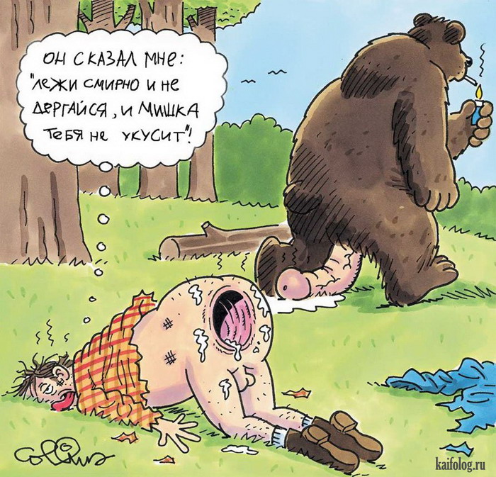 Знакомый, шел по тропе и увидел, что навстречу идёт медведь тогда он решил пугнуть медведя сигнальной ракетой, которая была у него. Дернул шнурок и направил ракету в медведя ,но впопыхах промахнулся(к счастью) и основной заряд ракеты срабатывает у медведя за спиной. Ломанулся медведь от взрыва за его спиной прямиком мимо человека. А дальше…. Штаны были мокрые и пахли.