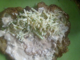 11. смазываем наши получившиеся жареные лепешки соусом из майонеза и чеснока.