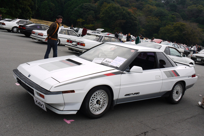 В 1985г. появилась дерзкая Subaru Alcyone. Alcyone – это самая яркая звезда в плеядах Subaru. В США она шла под именем Subaru XT. Машина была агрессивной, по форме напоминающей ястреба. Ее конструкция позволила достичь минимального на то время значения коэффициента лобового сопротивления (CD) 0,29. Объем двигателя 1781 см.куб, мощность 135л.с. при 5600 об./мин. На этом же авто дебютировал первый 6-цилиндровый субаровский оппозит ER-27/