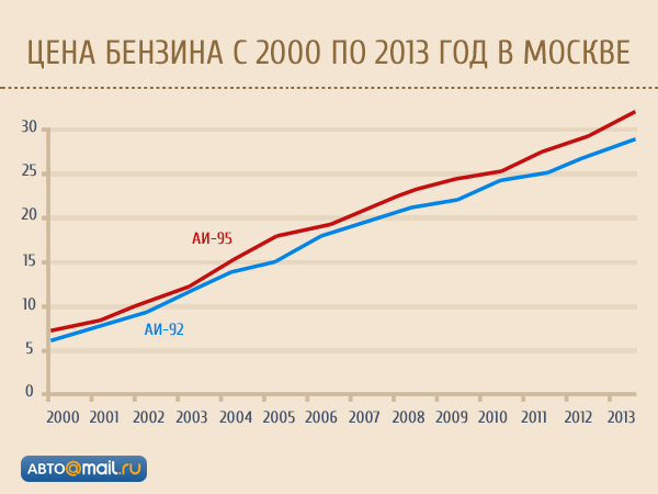 Нажмите для просмотра прикрепленного файлаОчевидной она была и несколько лет назад, еще до того, как стоимость топлива преодолела 30-рублевый порог. Достаточно взглянуть на таблицу, где приведена динамика средних цен на бензин за последние 13 лет. Поэтому цифра, упомянутая главой Союза нефтепромышленников, более чем реальна. Как и долгосрочные прогнозы, в которых говорится о достижении среднеевропейского уровня цен на «автомобильную еду». Но при этом не стоит надеяться на то, что из-за дороговизны бензина хотя бы 50% водителей спустятся в метро. Предпосылок для этого нет.