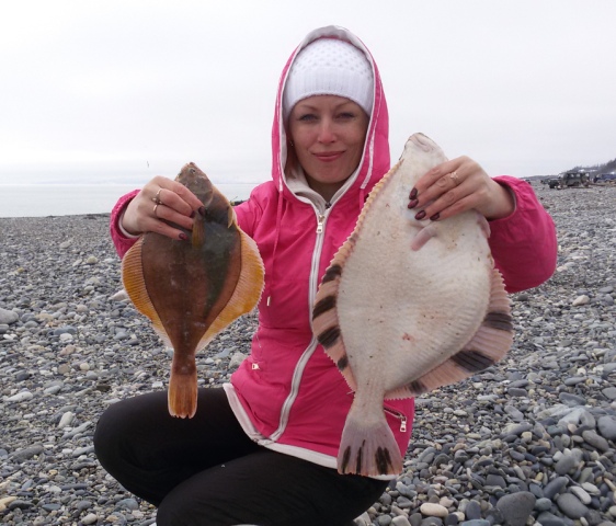 Сегодня на Магтуре камбала каменушка и песчанка где-то 50/50. Много мелочи, но попадаются и неплохие экземпляры обоих видов.