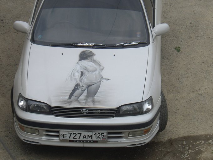 у нас в магадане нет таких спецов, есть просто любители а профи нет и это факт между рисунком и фото есть оч большие отличия с чего рисунок списывают, не профисеонально подобраные краски и не очень хорошо брошаные тени , руки не набиты, это видно не вооружоным глазом, на кузове есть свои линии и уклоны , при рисовании надо это всё учитывать а у нас нкак на капирку кинули и перевели ток более изменив масштаб, вобщем реалистичного рисунка не будет как пить дать , это как на фотоапарат зенит фото делать который оснащон зеркальной камерой и сделать снимок на мыльницу , вот вам и разница! думать вам решать вам , но если бы ктото из маляров поехал отучился бы на такое дело так сказать для повышения квалификации то было бы магадану счастье! ( в даном примере не хочу сказать что руки из опы растут , просто привожу факты и сразу извеняюсь если когото цепануло по самолюбию) всем пасибо