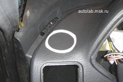 Нажмите для просмотра прикрепленного файлаНажмите для просмотра прикрепленного файлаНажмите для просмотра прикрепленного файлаОтверстия сверлил по кругу внешнего диаметра размеченной окружности. Получившийся кружок выломал кусачками. В итоге, поломал сверел десять, но всё равно, это лучше чем снимать панель приборов. Неровные края подравнял дрелью с насадкой-фрезой для металла.