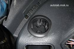 Нажмите для просмотра прикрепленного файлаНажмите для просмотра прикрепленного файлаНажмите для просмотра прикрепленного файлаСамое сложное в установке - это сверление отверстий в панели приборов. Из-за расположенного сверху ветрового стекла, невозможно поствить дрель под прямым углом. А применение дрели необходимо, т. к. в этих местах панели приборов под наружней отделкой находятся металлические пластины.
