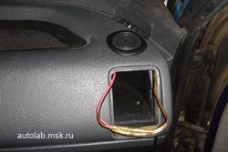 Для выбора места установки твитров, закреплял их с помощью автопластилина в разные места под разными углами: и на заглушки зеркал и на стойки ветрового стекла. Но на мой взгляд, самым подходящим местом по качеству звучания оказалась панель приборов. Расположенные на ней слева и справа и направленные вверх, пищалки играют лучше всего за счет угла отражения от ветрового стекла.