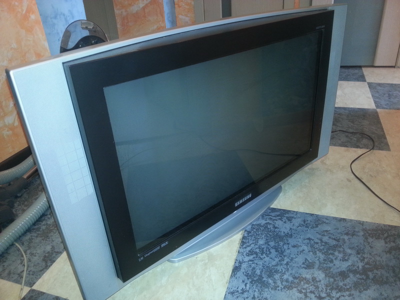 ТВ Самсунг, 32 дюйма диаогналь, кинескоп (не плоский т.е.), 720р. Разъемы: Компонентный, композитный, скарт, S-видео. Минусы: Вес 40 кг., HDMI нет, USB нет, на пульте пара кнопок уставших.
