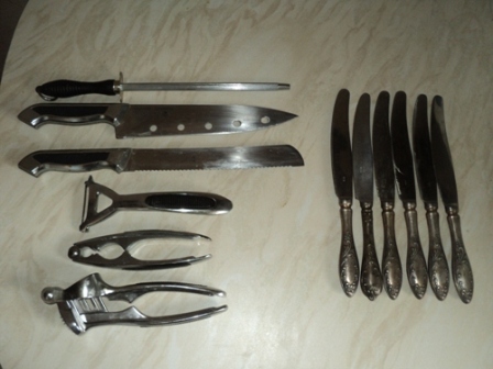 Нажмите для просмотра прикрепленного файла Нажмите для просмотра прикрепленного файла6 мельхеоровых ножей. 2 ножа, точилка и остальное фирмы Peterhof - всё из хорошей, качественной стали - забрали