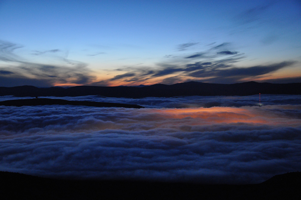 ... чистейшее небо, шикарный закат, полное безветрие, клубящийся туман, полыхающий отблесками огней ночного города, потом звезды, тишина, покой и умиротворенность спящей природы...