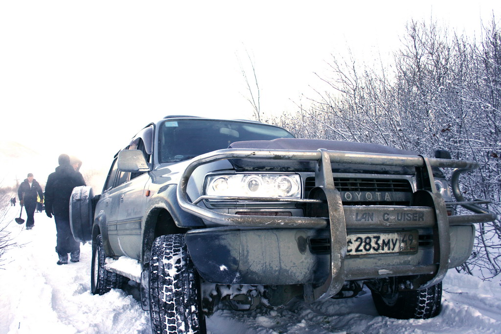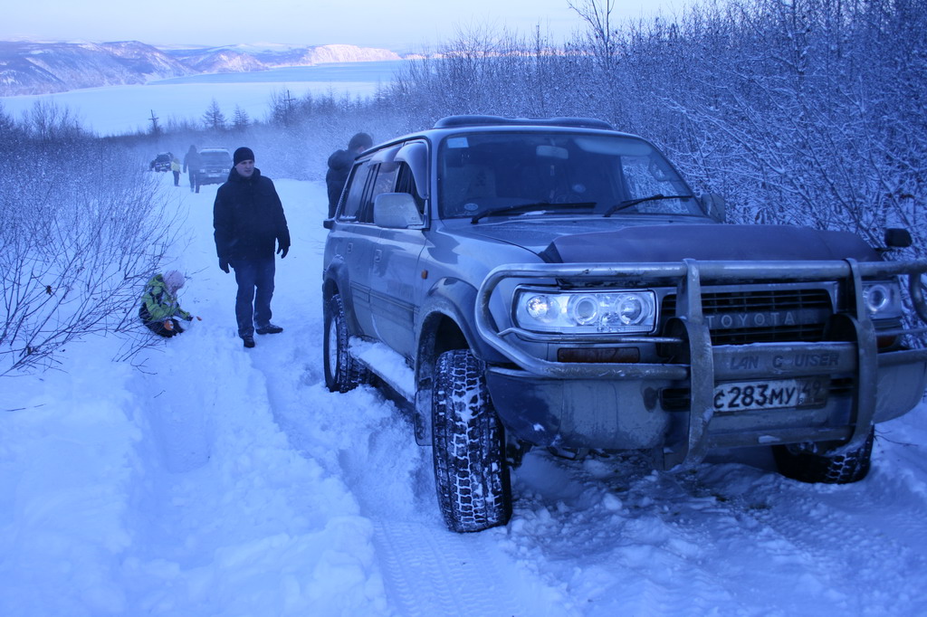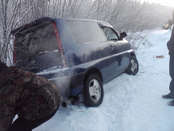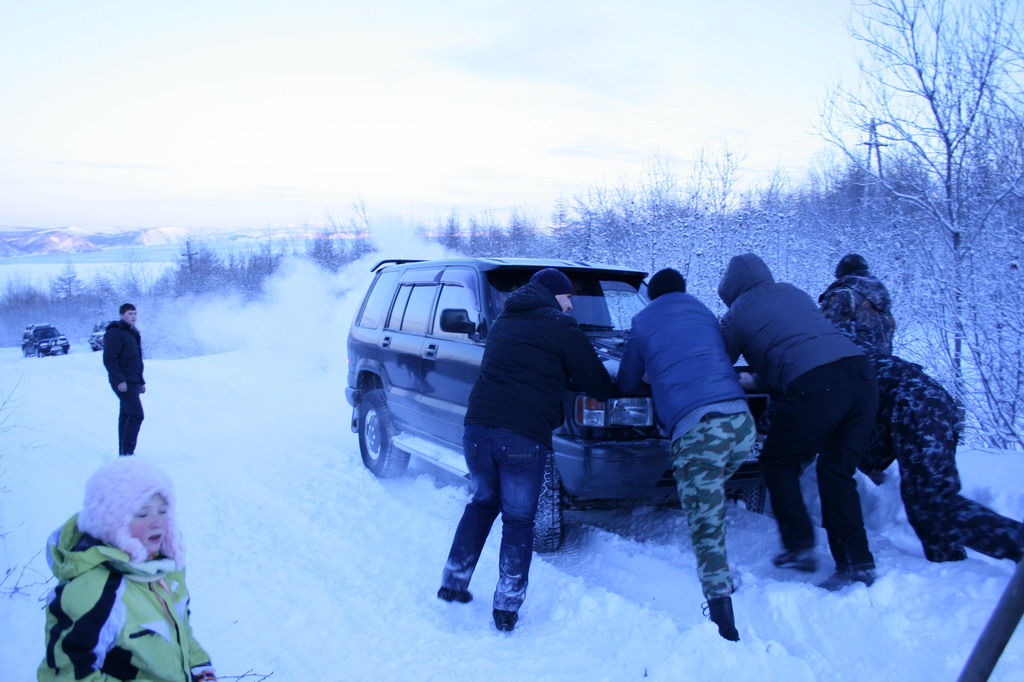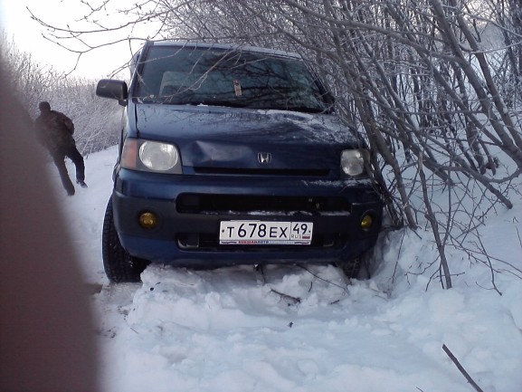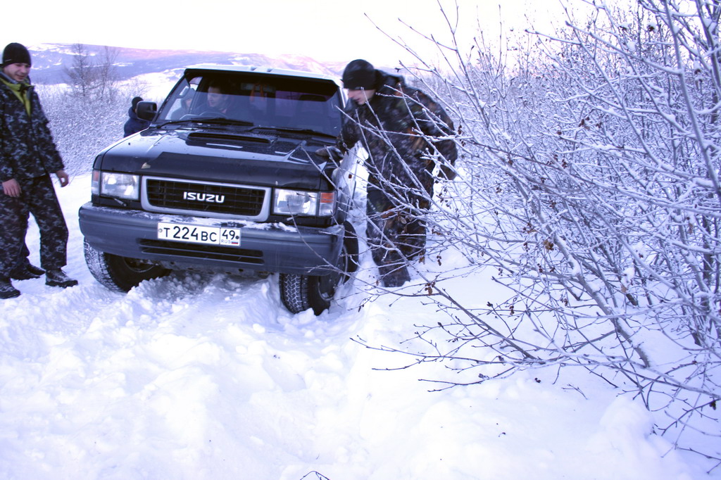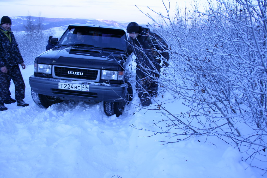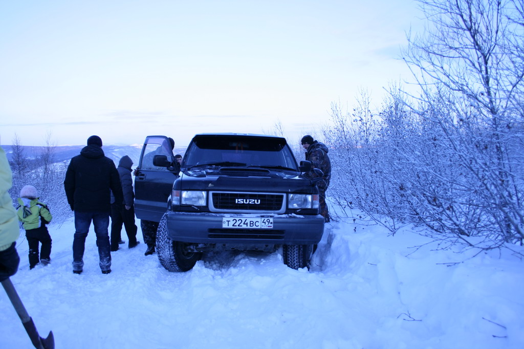 он был впереди и немного нам мешал когда застрял пока вытащили уже смеркалось
