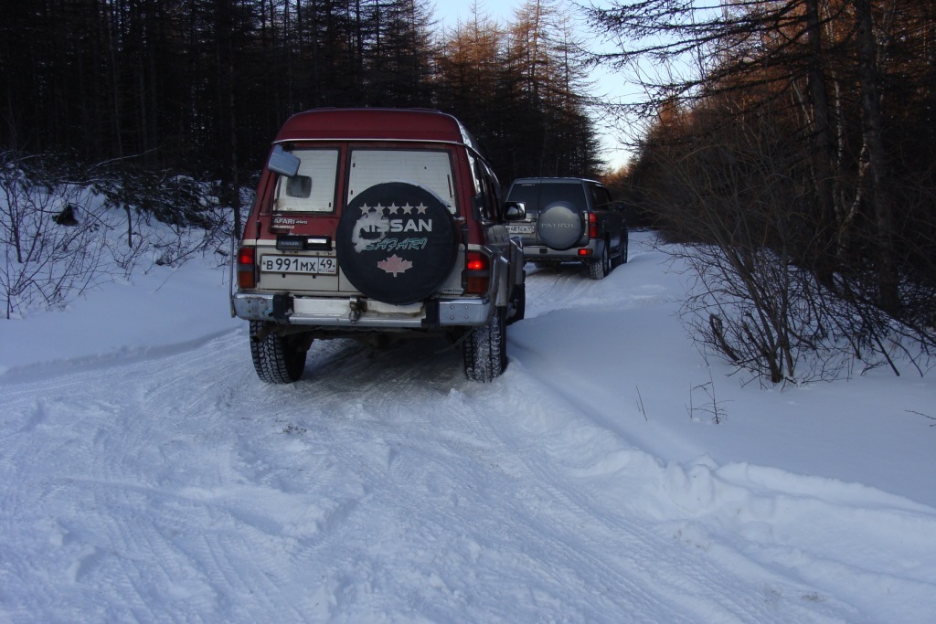 Скатались по маршруту Горняк-Дукча. Дорога - хайвей накатанный. В районе подвесного рыбачат. На дукче ручей не замерз. Сунулись через него - провалились передним колесом, сел Y60 на раму. Вытащили и поехали обратно. Вся дорога в один конец занимает, не спеша, 12 минут. Фоток мало. Думаю, появятся еще со второй стороны.