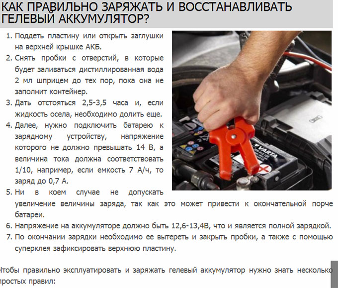 Как правильно заряжать гелевый аккумулятор