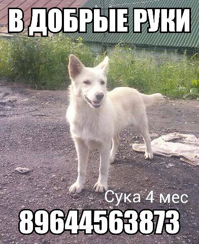 Отдам щенка Лайки, мальчик. Возраст 2,5 месяца. Цвет белый. Телефон 891Ч86Ч116Ч