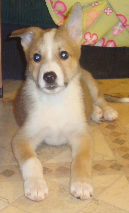 Рыжий щен с белым воротничком, месяца два-три. Нашелся возле магазина "Кораблик"
